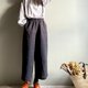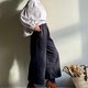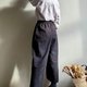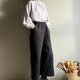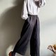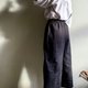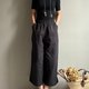 黑山假期/粗曠顯瘦黑色棉麻寬褲/哈倫庫/九分褲