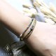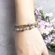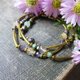 一款簡單的藍色系手環,彈力繩系列拆脫非常方便。使用天然藍珊瑚、古銅輝石搭配黃銅,適合金色、銅色系手鍊混搭。藍色對應喉輪,提升表達能力與思考邏輯,是送禮的好選擇。
