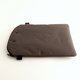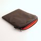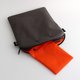 外側は耐久性の高いポリエステルコーデュラ、口のなかはオレンジ色のナイロン。中綿入りで少しクッション性があります。(落下時に中身を保護するほどの保護力はありません。)