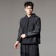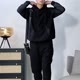 【推薦】黑色暗紋拼接連帽衛衣 男士休閑帽衫上衣