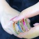 一圈圈細緻的千穀粒金珠珠,像是在指尖撒下金色糖霜,襯托著七彩繽紛的圓形藍寶石——彷彿一場繽紛小宇宙的繞行派對。每一顆彩寶都閃耀著自己的光芒,跳躍著甜美、雀躍的節奏,像在說:「今天的心情,也要是彩虹色的!」