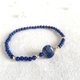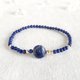 以藍紋石隨形珠配襯青金石圓珠,再綴以包金珠,小巧精緻,散發著沉穩、恬靜而高貴的獨特氣質。