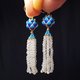 開運 頂級 藍暈月光石 蓮花 琺瑯 流蘇 富貴 清淨 智慧 耳環 單品