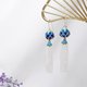 開運 頂級 藍暈月光石 蓮花 琺瑯 流蘇 富貴 清淨 智慧 耳環 單品 - 耳環/耳夾/耳骨夾 - 寶石 藍色