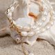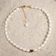 以純白珍珠結合金色愛心與延長鍊,象徵純潔與愛。整體風格優雅經典,傳遞浪漫與恆久之美。