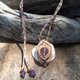 我們僅使用圓球形拋光的紫水晶碗部分,以流蘇編織(Macrame)的方式進行裝飾。