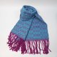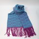 線材為100%美麗諾羊毛線以手工梭織織成圍巾,圍巾兩面織紋呈現的圖案略有不同。