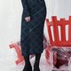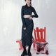 版型以包臀長裙為基底, 為行動上更為方便,特意於裙子背面作開岔設計,布料特別選用彈性且透氣的布料使穿著時更加舒適,整體透過俐落修飾且好搭配的版型來襯托出本季印花,是一款無論本季同款印花短版上衣或是襯衫,都是非常好搭配的單品;本季印花以早期辦桌傳統元素作為靈感的,融合了大圓桌、紅塑膠椅、燈籠、棚架等形象,解構後巧妙組合,點陣排列出時尚雅緻的經典風格。布花顏色不乏INF的經典暗黑,還使用了傳統茄芷袋中的紅、綠、藍三色,營造出兼具現代感和傳統風格的獨特印象。