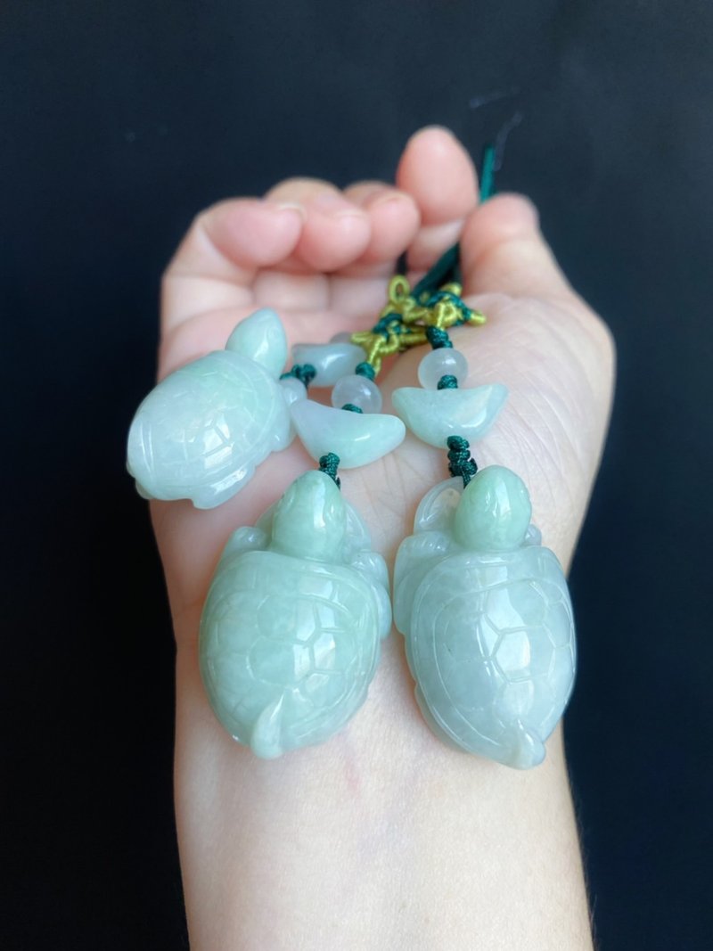 ▪B綠底嘴部飄花長壽龜尺寸約3.2X2.3X1.2cm