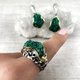 Handmade sterling silver and gold plated silver ring with natural velvet malachite stone. The Best gift idea for those who love exclusive handmade items and unique designs.