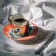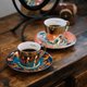 杯子及茶托上的顏色和圖案皆為藝術家手工繪製,茶托上金邊也是手工描金,細節精美講究的產品。