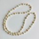 こちらはガラス素材の原玉に、オリジナルパール塗料にて何層にも渡り重ね塗りを施した日本製ガラスパールネックレスになります。きめ細かい質感と程良い艶感が特徴の複数カラーパールをmixしたオペラサイズのネックレスになります。金具を使用しないエンドレス加工にて仕上げました。直径約4mmと8mm玉で、長さは頭の上から簡単に被ってお使い頂ける全長/内周約75cmに。ガラスパール特有のひんやり感も特徴のひとつとなっております。