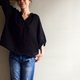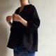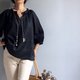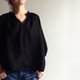 開放以新的黑色亞麻訂做/迷幻黑森林/V領小開襟/七分袖/泡泡袖100%亞麻