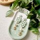 💚【原創手作】Ocean On The Moon - 綠方格盤圓形軟陶耳釘/夾