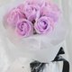 夢幻紫色系10朵中小型香皂花束,花束都附精美提袋。花束高度約30公分,我們能提供客製增加香皂花的數量與花束大小,下單前請先確認,若有需要大量採購訂製,歡迎私訊或跟我們聊聊。
