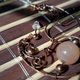 - 金屬編織成的橘/橙月光石耳環。純手作。獨一無二