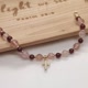 材質:6.5mm草莓晶+6.5mm櫻花雨薔薇輝石+A級5mm石榴石+包14K金十字架鑲鑽吊墜