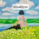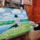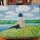 - Oil painting on canvas size 40x30 cm. Girl with black cat on flower field hill handpaint only one peice in the world