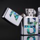 此款此用高拋光金色機身,正面反面透過貝殼鑲崁及蝕刻技術呈現出經典ZIPPO 商標。翠綠光色澤美輪美奐,簡約機身設計細緻高雅。