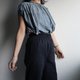 こちらのシャツはカジュアルはもちろん、少しきっちりとしたオフィスのようなフォーマルな場所にも着て頂けます。袖の部分が丸く柔らかい女性らしい印象を与えます。