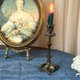 古雅的青銅色調與迷人的包漿光澤,完美融合自然主義與曲線美學;底座由層疊的莨苕葉片生動構成,線條流暢,充滿生命力,極富動態美感;燭杯部分設計成盛開的花朵形狀,花瓣捲曲有致,環繞著精美的滴盤,每一處細節都展現出Art Nouveau新藝術時期對自然形態的極致追求與浪漫幻想。無論作為客廳裝飾、壁爐擺件或是浪漫晚餐的主角,它都能瞬間提升空間的古典氛圍。