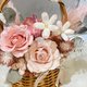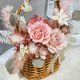 - 微微豆沙粉,搭配奶白色的玫瑰與小花; 就像一首溫柔的小詩,靜靜地裝在籃子裡。 沒有張揚的色彩, 卻有讓人一看就安心的力量! 擺在家裡、辦公桌, 都是一抹恰到好處的溫暖。