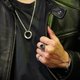 象徵新生的骷髏,在黑曜石的鏡像中若隱若現,引領著新的力量邁進,勇於面對自我。骷髏環狀排列包覆黑曜石的設計,佩戴時能感受到不同角度帶來的視覺震撼。