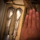 這組餐具是大型的肉類分食刀,刀叉還是非常鋒利,用來當水果刀也可以,純銀手柄非常的粗,照片中是成年男性的手,與其對比,重點是原裝盒還在,是ㄧ組是兼具實用及觀賞性的古董收藏。