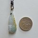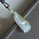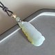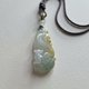 一件融合白色黃色和晴水色的緬甸翡翠九尾狐吊墜 ,玉質潤澤,有膠感,呈半透明,整體面積約港幣一元(25mm)大,相約於台幣10元。配有頸繩,希望你會喜歡。