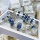 坦桑9mmx6mm、印度玻璃藍月光4mm、菫青石4.5mm、純銀珠2.8mm、純銀花圈隔珠4mm、純銀小方糖2.2mm、純銀鋯石海海藍寶配件、純銀鋯石配件易扣式扣頭、韓國珠寶鋼絲線