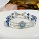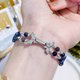 店主獨家設計款,雙手排及選用易扣式純銀鍍K金扣頭,採用濃色坦桑石手排與印度料頂級玻璃體強藍月光、透體濃色堇青,輕奢華藍調氣質典雅風格,增加洞察力與直覺、自信,加強人際關係、助心情平和、吸收正能量🫶🏻