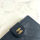 【LA LUNE】中古二手Chanel黑色小羊皮金扣皮革中短夾銀包小手袋