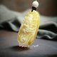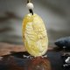 在白花蜜蠟的等級序列中,唯有「高白花蜜蠟>白花蜜蠟>飄花蜜蠟」之最,兼具白度、紋理與蠟質純淨度,方能展現這種如瓷如雲、溫潤無瑕的質感;鍾馗神情剛正,鬚髮飛揚,威中帶慈,氣韻飽滿,在柔潤蜜蠟中,刻出陽剛正氣與靈光之勢。佩於胸前,不僅為鎮邪護主、安定心神,更寓意心明如琥珀、正氣長存...