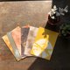 - 天然且帶有手感的植物染布,經由職人巧手下,製作成一張張蘊含手作溫度的明信片,令收到的人也能感受到暖暖的心意。每組內含的明信片色彩、紋樣皆不同,為保有驚喜感,明信片款式以隨機方式包裝出貨。