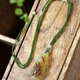 **〔 簡介 〕:**一款非常精緻漂亮的和田玉糖料花鳥吊墜,寓意:吉祥如意,雕工精緻,上身簡單大方,尺寸約:41.9*17.4*9.5mm,重:10.9克。搭配純手工原創鏈子,附送權威國檢鑑定證書。