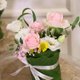 / 選用粉嫩玫瑰與桔梗及小花點綴,搭配特殊葉包設計,讓整體更具立體層次與自然律動。 /