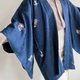 - 春夏日本製和風印花深藍色薄款古著羽織和服外套