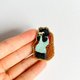 ブローチ金具は、回転ピンというタイプを採用しました。着用時のみ針が動かすことができ、それ以外は針が飛び出ないようロックをかけることができます。