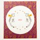 背景は羽根、薄い卯の花色に様々な色の正方形が散りばめられた柄の和紙。