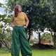 - Full Pleated detail fabric. Made into this simple loose, wide leg pants with elegant bottom. Beautiful soft elegant cotton fabric. Made into long loose volumed leg pants. Side elastic waist with front zipper and button closure. 2 side roomy pockets.
