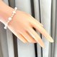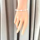 直徑7-8mm天然淡水珍珠、直徑3-4mm天然淡水baby珠、2mm銀色琉璃珠相間隔的連在一起呈現出美好的深思之感的秩序美,每顆珍珠都夠潔白透亮,並呈現出炫彩光芒,紗織小姐為其以純銀龍蝦扣搭配,長度約17mm,並在腕間垂下一條約3cm純銀延長鏈,連綴一枚小心心,精緻感立現,帶給你月光白色的溫柔。