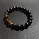 (客製化禮物) 簡約時尚風手鏈,主石採用霧面磨砂黑瑪瑙+虎眼效果明顯的焦糖色黃虎眼石,搭配鑲嵌黑色鋯石的金色配件,是一條不可多得的質感手鍊。推薦給情侶一起配戴。