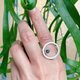 以包鑲取代了爪鑲,並讓戒圍有自行可微調的靈活度(此款戒圍為10#)