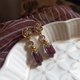 - 金色包邊鋯石小花,淡紫與銅金玻璃米珠交錯,色調與黃銅溫潤光澤相襯;微閃藍光的小拉長石點綴其中,黛紫色調透感玻璃方珠落於下方。§ 整體展現出古典格調氛圍。