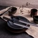 命名意涵也來自於鐵氧化的獨特黑色,加上大馬士革鋼紋,呈現日式風格的美感與深度。