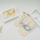 寶寶彌月禮盒精選3件組:奶嘴夾布套組x1、小圓領口水巾x1、寶寶防踢被x1、上下蓋禮盒x1、質感緞帶x1、精美小卡X1