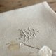 Elegant classic French antique tablecloth napkin with hand-embroidered monogram letters of AS