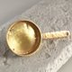 真鍮板から切り出して制作した、工房オリジナル:小さなフライパンのピンバッジ/タイタックです。