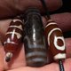 本件二眼天珠項鍊珠身飽滿、完整無損,表面光滑,但仔細用放大鏡觀察在尾端有一定程度的風化紋及輕微不規則龜裂,歷史痕跡明顯,足以印證是真的老東西!