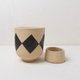 底穴有り、受け皿の付きの陶器鉢。小さなサボテンなどの多肉植物や小さめの観葉植物向けの鉢です。水やり後の流れ出た水も捨てやすい形になっています。